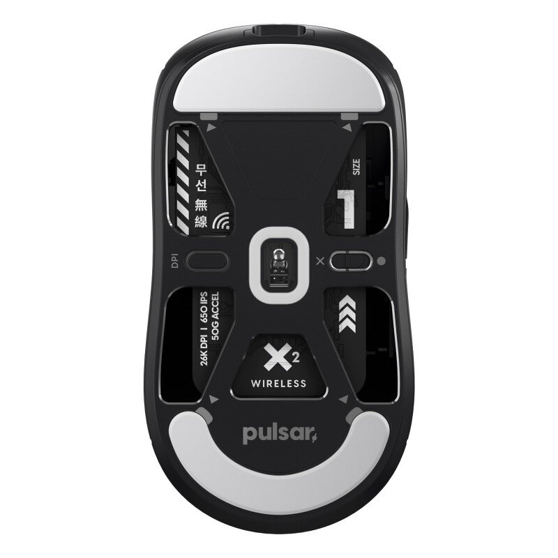 Pulsar X2 оснащена новейшим сенсором PIXArt PAW3395, способным работать со скоростью 650 IPS, ускорением 50g, 26 000 DPI и частотой опроса 1000hz / 1ms. Это самый высокопроизводительный оптический сенсор для игровой мыши.