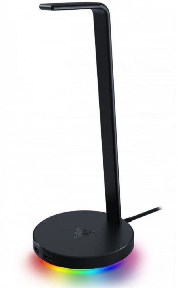 USB-концентратор на базе Razer Chroma RGB, который можно использовать как подставку для гарнитуры, с комбинированным разъемом 3,5 мм, поддерживающим объемный звук 7.1.