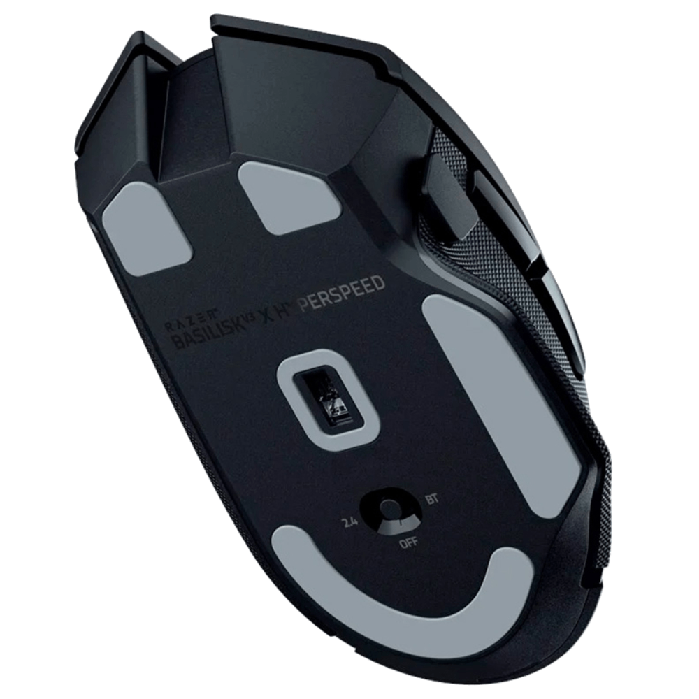 С Razer Basilisk V3 X HyperSpeed нет никаких ограничений в выборе стиля игры. Вооруженный 9 программируемыми элементами управления, двухрежимным беспроводным подключением и настраиваемой подсветкой Razer Chroma™ RGB, он создан подчиняться только одному хозяину — вам.