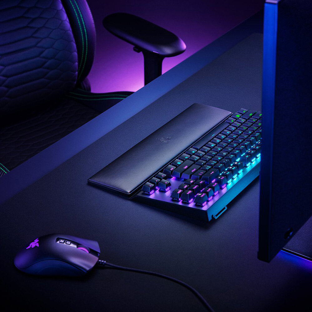 Эргономичная подставка под запястья Razer Wrist Rest с углом наклона для максимальной поддержки запястий и мягкой пеной с эффектом памяти для полного комфорта гарантирует, что единственными, кто почувствует напряжение, будут ваши соперники.