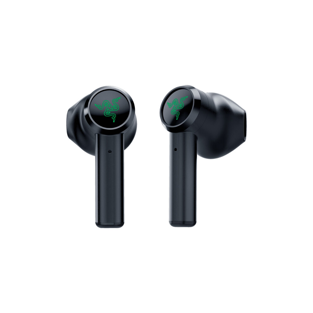 Стильная и надежная беспроводная геймерская гарнитура с встроенными микрофонами для оперативного общения в игровом чате или приема голосовых вызовов абонентов сотовой связи в режиме hands free. Позиционируется как продукт средней ценовой категории, предназначенный для прослушивания музыки популярных жанров и качественного озвучивания игрового процесса на ноутбуках, смартфонах и планшетах. Благодаря использованию беспроводного интерфейса Bluetooth 5.0, обеспечиваются низкие задержки, что принципиально важно для мобильного гейминга и просмотра видеоконтента. Кроме этого наушники Razer Hammerhead TWS гарантируют безупречную стабильность соединений (в радиусе 10 м) и высокую скорость подключения/переподключения. Стильный наружный дизайн этой модели выполнен с использованием узнаваемого фирменного логотипа яркого зеленого цвета. Конструкция устройства и эргономичная форма вкладышей дает надежную фиксацию в ушной раковине, которая сохраняется при физической активности. Сочное, с выраженным низкочастотным акцентом звучание наушников обеспечивают динамические излучатели диаметром 10 мм (воспроизводят диапазон от 20 до 20000 Гц). Гарантируется полная совместимость с устройствами под управлением Android и iOS, предусмотрено сенсорное управление воспроизведением аудиотреков и видео.