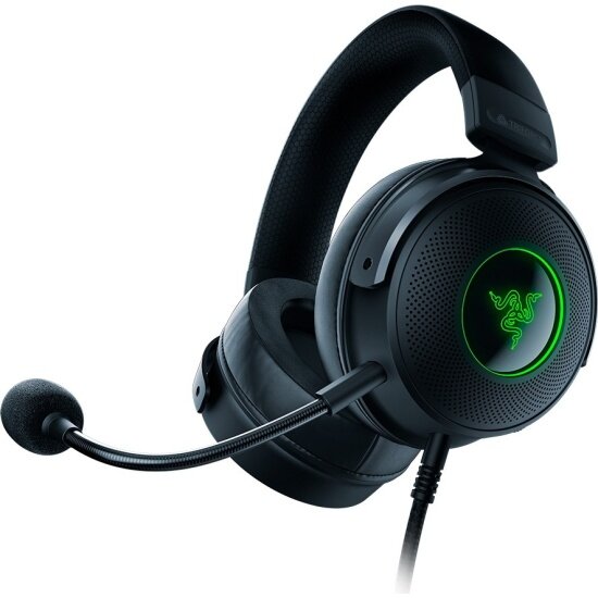 Раскрасьте свое погружение с Razer Kraken V3 — игровой компьютерной гарнитурой с подсветкой Razer Chroma™ RGB для создания динамических световых эффектов в играх и на устройствах. Эта гарнитура, которая очарует вас своим видом и звучанием, оснащена улучшенными излучателями и технологией объемного звука для создания реалистичного звучания.