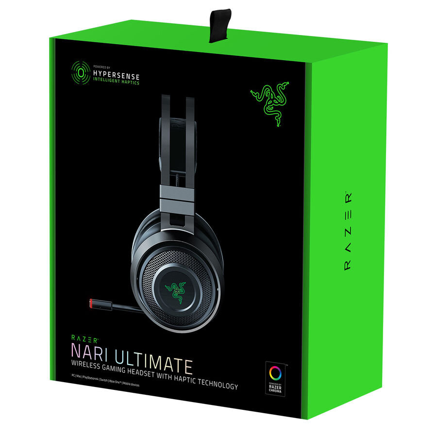Razer Nari Ultimate с технологией Razer HyperSense — это беспроводная игровая гарнитура, оснащенная интеллектуальной технологией тактильной вибрации, разработанную компанией Lofelt™. Эта технология преобразует звуковые сигналы в динамическую сенсорную обратную связь в режиме реального времени. С технологией Razer HyperSense гарнитура Razer Nari Ultimate анализирует форму и частоты игрового звука, а затем превращает их в богатые, реалистичные тактильные эффекты. Вибрации проносятся точно слева направо, и с разной интенсивностью, повторяя направление звука в игре.