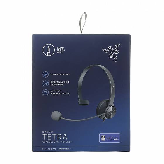 Встречайте Razer Tetra for PS4 — чат-гарнитура с кардиоидным микрофоном, предназначенным для подавления окружающего шума, чтобы вас можно было слышать в голосовом чате с кристальной четкостью, при этом сохраняя высокий уровень громкости на динамиках домашнего кинотеатра, для получения удовольствия от игры на PS4.