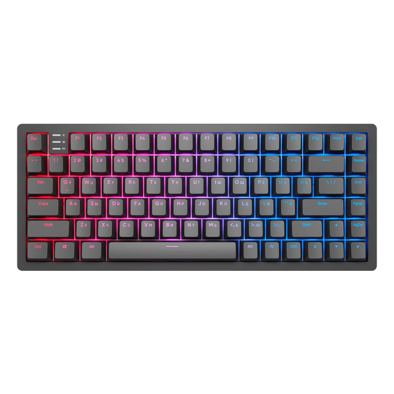 Эта игровая клавиатура на основе смазанных с завода переключателей g3ms Sapphire - отличный выбор для геймера любого уровня. Удобный компактный формат 75% содержит в себе все нужные для игры и работы клавиши. Кейкапы изготовлены из высококачественного PBT пластика, а гибко настраиваемся RGB подсветка позволит использовать клавиатуру при любом уровне освещения и изменить внешний вид по вашему желанию. Кроме того на левой стороне клавиатуры расположено колёсико регулировки громкости.