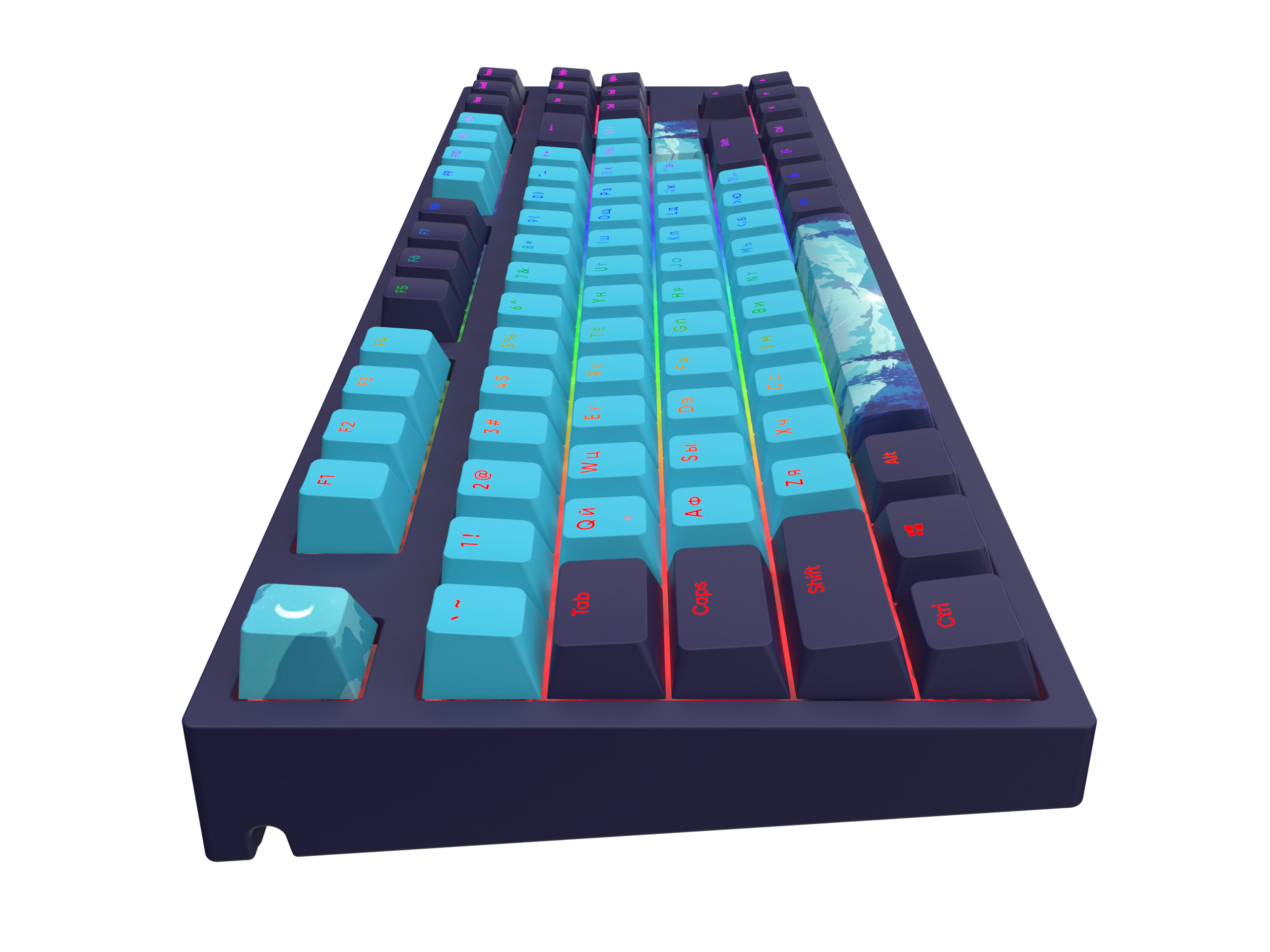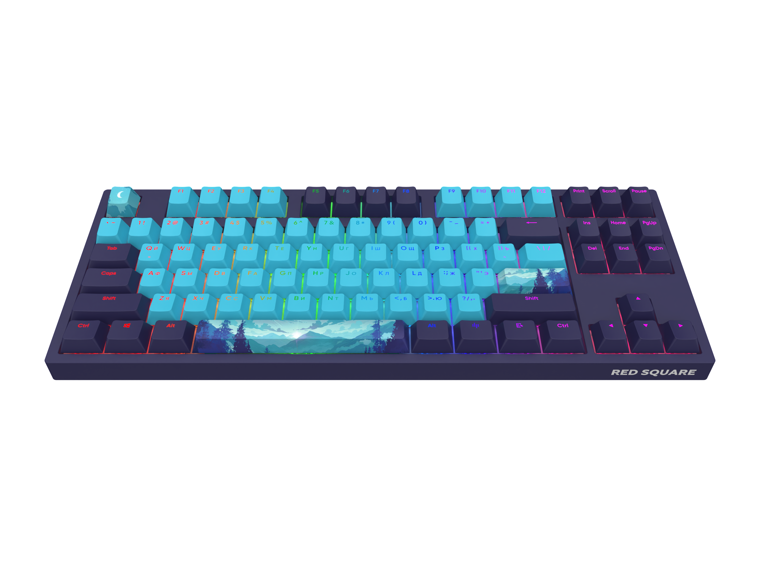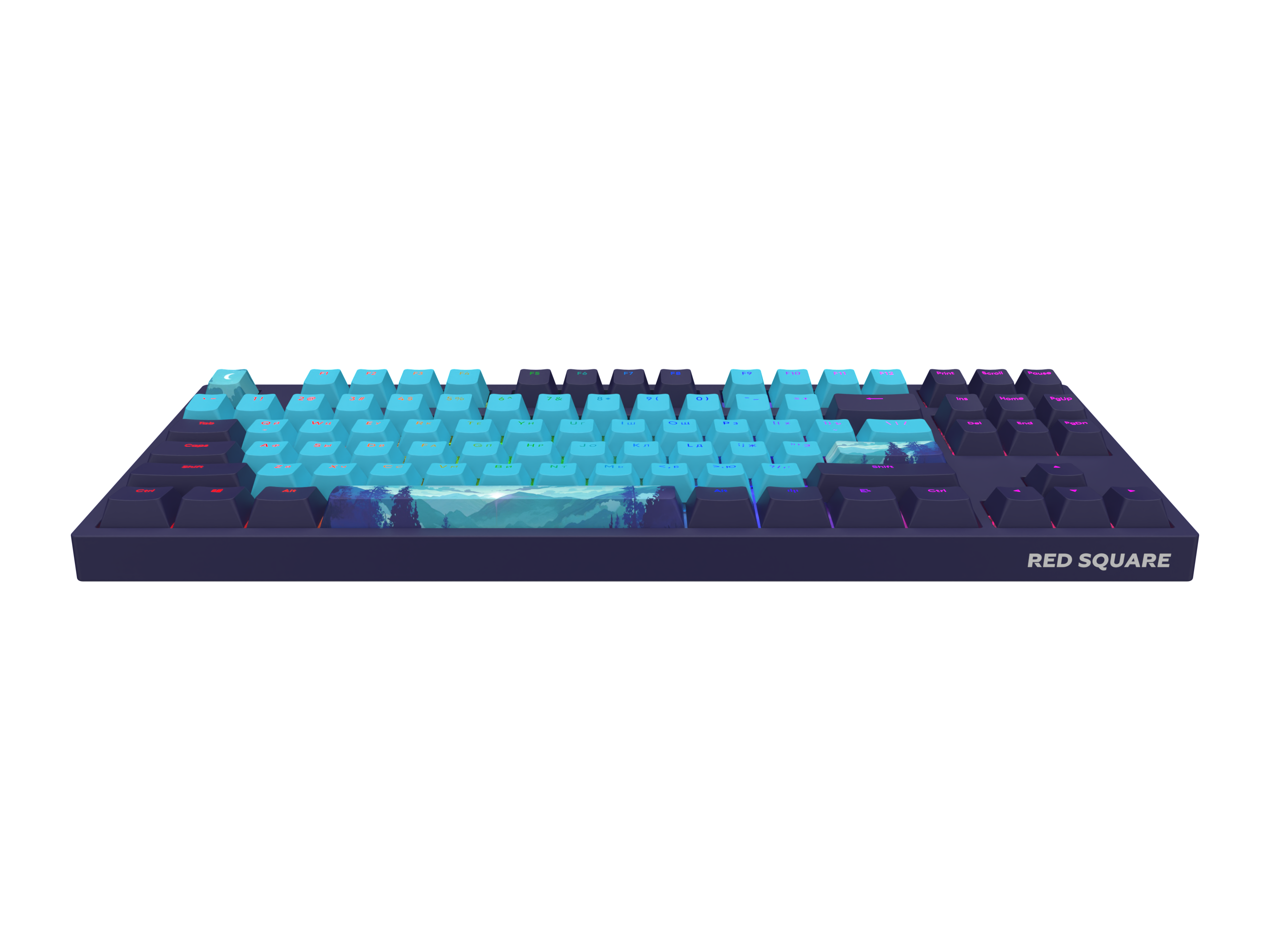 Клавиатура Red Square Keyrox TKL Classic Everfrost оформлена в фиолетовом и голубом цветах. К тому же на некоторых клавишах изображены горы, которые создают крайне необычный и притягательный стиль.