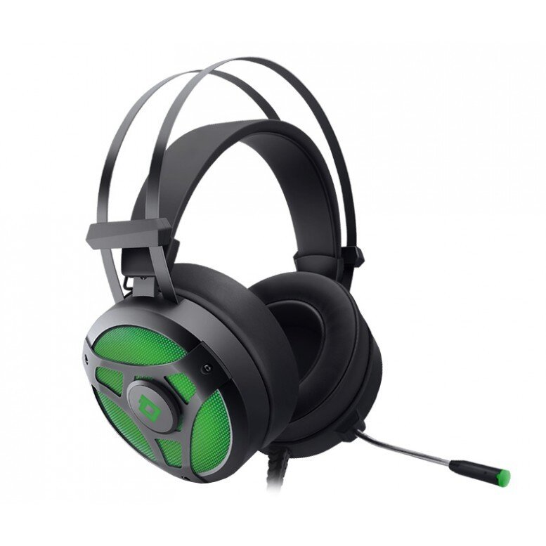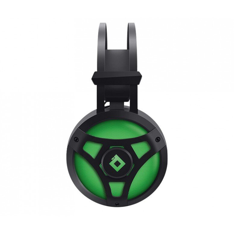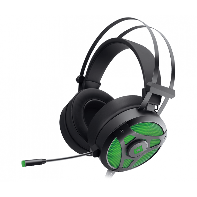 Чашки и микрофон гарнитуры снабжены красивой зеленой подсветкой, которая не режет глаза и смотрится очень органично !