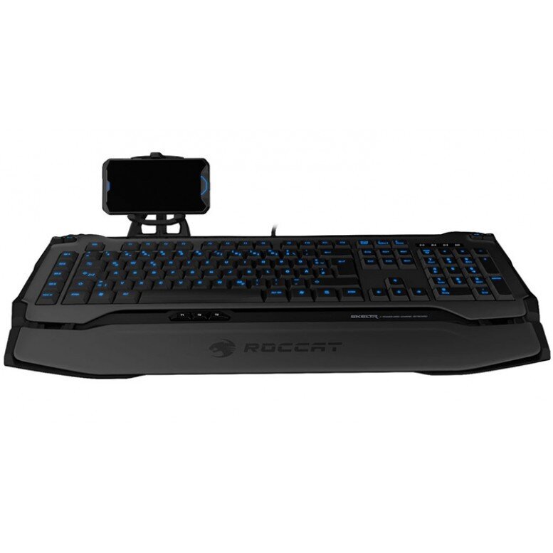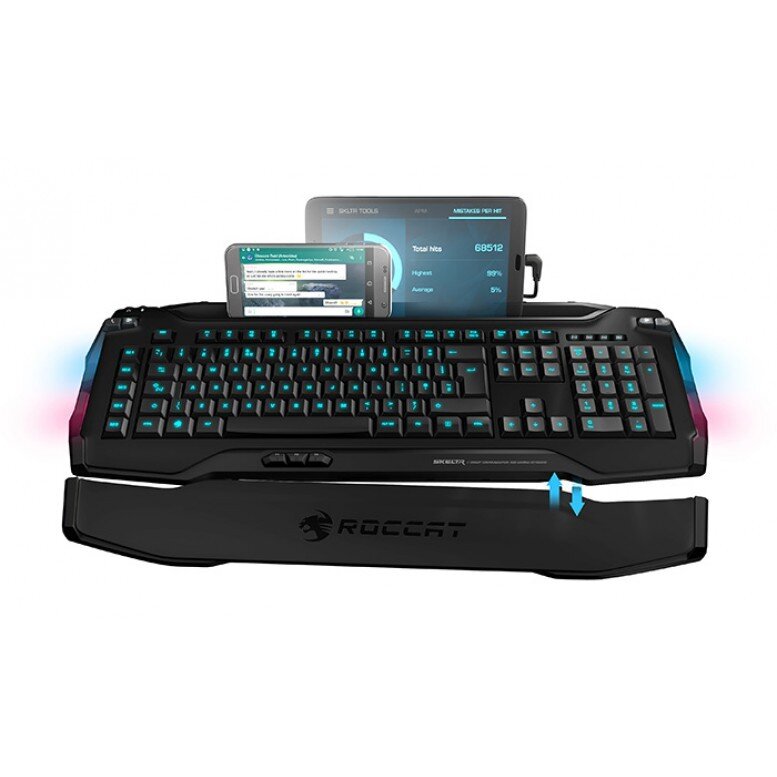 Самый большой вопрос при интеграции мобильного устройства в игровую клавиатуру – это куда же поместить само мобильное устройство. Рынок интегрированных со смартфонами или планшетами клавиатур наводнен продуктами с недолговечными держателями и док-станциями, сделанными из дешевого пластика, который легко сломается. Ну уж нет! Мы приняли этот вызов и разместили слот для телефона в задней части клавиатуры. В нем нет никаких деталей, которые могут легко сломаться, и он поддерживает практически любое мобильное устройство на рынке.