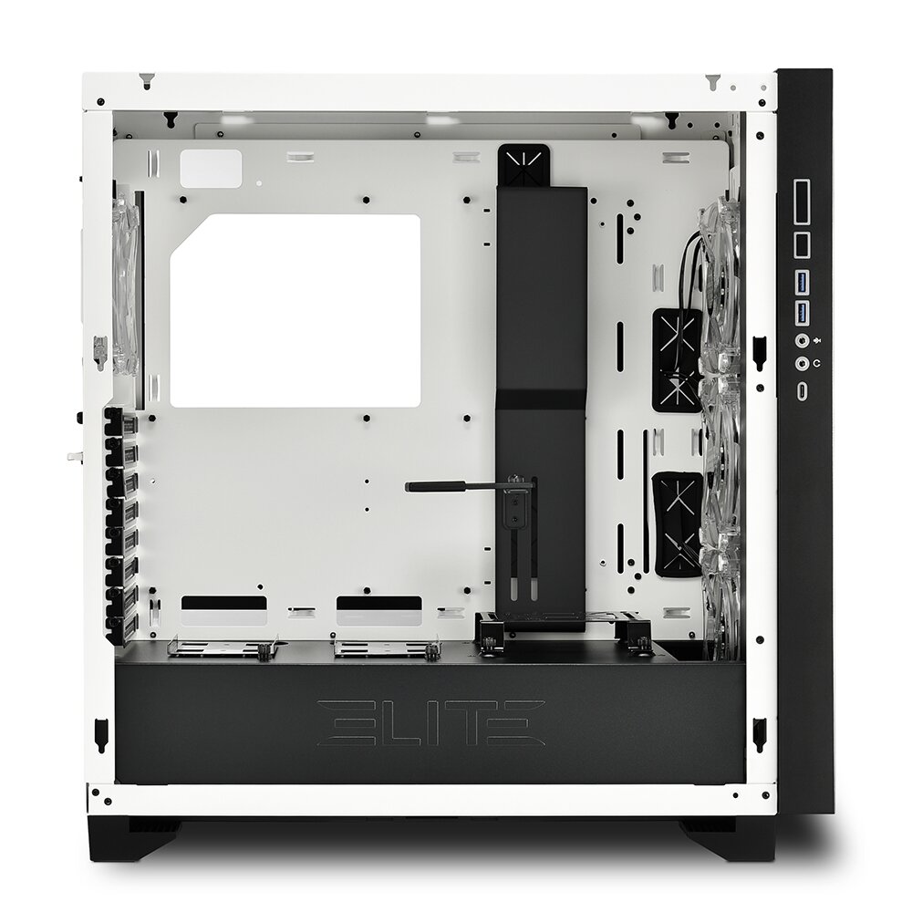 Стильный подиум для компонентов премиум-класса. Аппаратные средства, встроенные в корпус ELITE SHARK, заслуживают внимания. Поэтому мы оснастили CA300T двумя боковыми панелями из закаленного стекла. Левая боковая панель обеспечивает полное представление о внутренней части корпуса, так что установленные компоненты могут быть идеально отображены. На правой боковой панели самая нижняя часть закаленного стекла окрашена в черный цвет, чтобы компоненты внутри туннеля блока питания не отвлекали от общего визуального эффекта корпуса. SSD с элементами RGB или внушительные HDD приобретают здесь свое значение. У кабелей нет шансов запутаться: кабели можно просто скрыть в просторном кабельном отсеке, который можно открывать и закрывать, а также за подвижной крышкой для кабелей. Чтобы не было лишних элементов в поле зрения, боковые панели устанавливаются без винтов на их поверхности или на задней части корпуса и быстро и легко прикрепляются к раме корпуса за несколько простых шагов.
