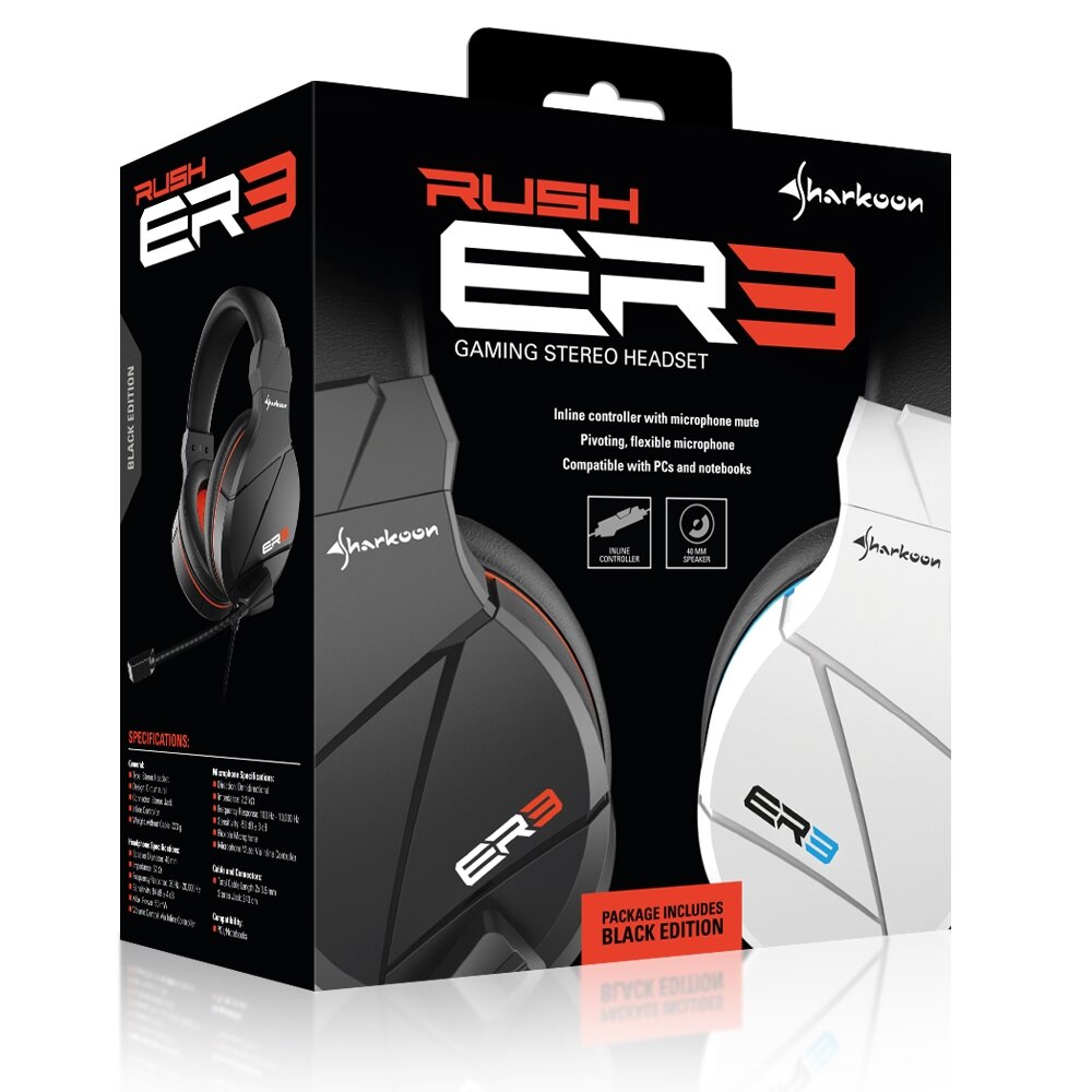 Sharkoon Rush ER3 абсолютно все вращается вокруг вас и вашей команды. Надежные 40-мм динамики и поворотный гибкий микрофон - это именно то, что нужно для обсуждения тактики маневров с членами вашей команды. Оголовье удобно подходит для головы любого размера, в то время как легкие мягкие круглые амбушюры обеспечивают комфорт в использовании. Спортивный игровой дизайн, базовый цвет - черный или белый, идеально подойдет для любой игровой среды.
