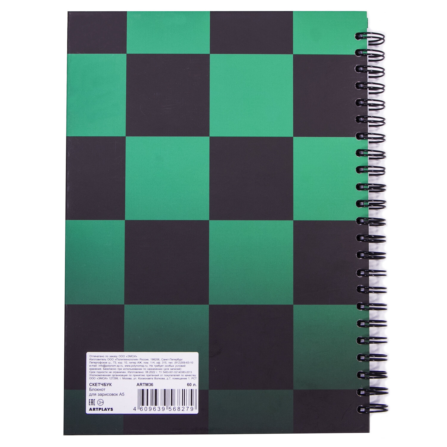 Обложка скетчбука имеет матовое покрытие Soft Touch и крепится на пружине. Внутри - 60 листов нелинованной бумаги формата A5.