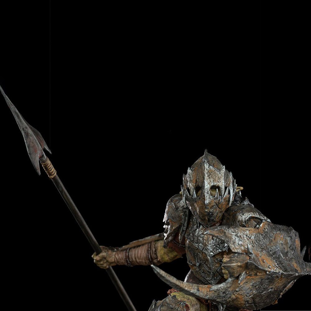 Орки Тёмных гор - жестокая и мерзкая раса. Они вторглись в королевство гномов и перебили их всех. Теперь же орки преследуют Братство Кольца по шахтам Мории. Данная фигурка экипированного орка станет отличным дополнением к коллекции персонажей из Властелина Колец. А проработка мельчайших деталей позволяет передать всю сущность орков.