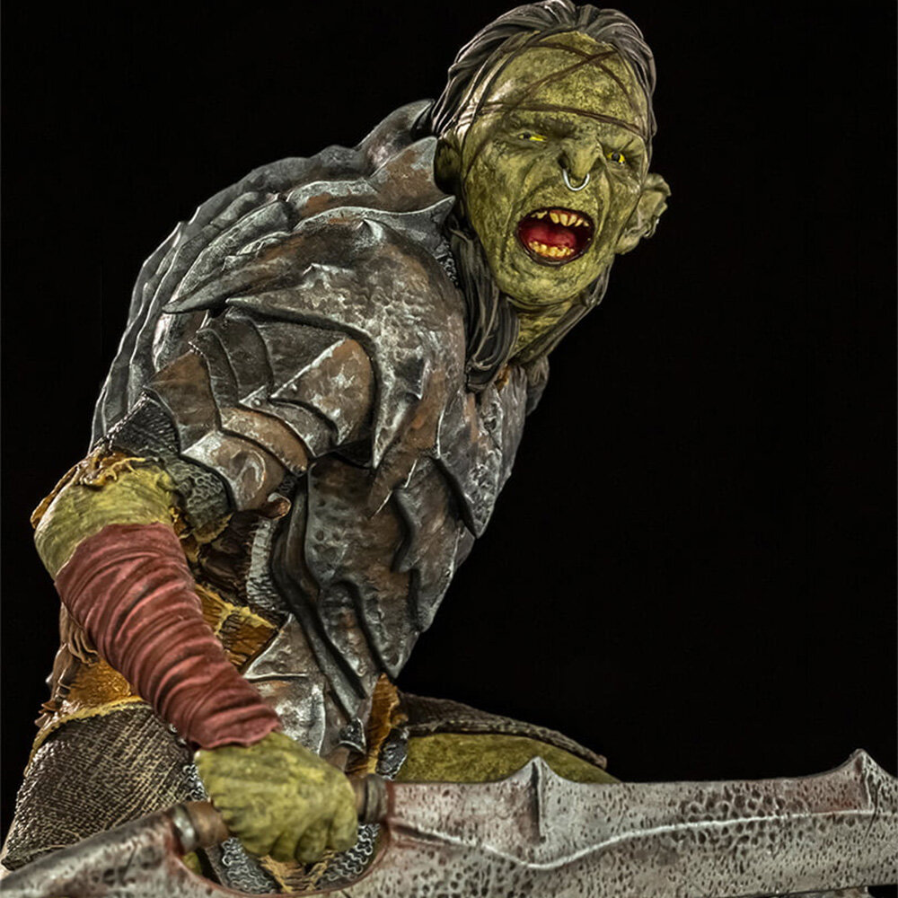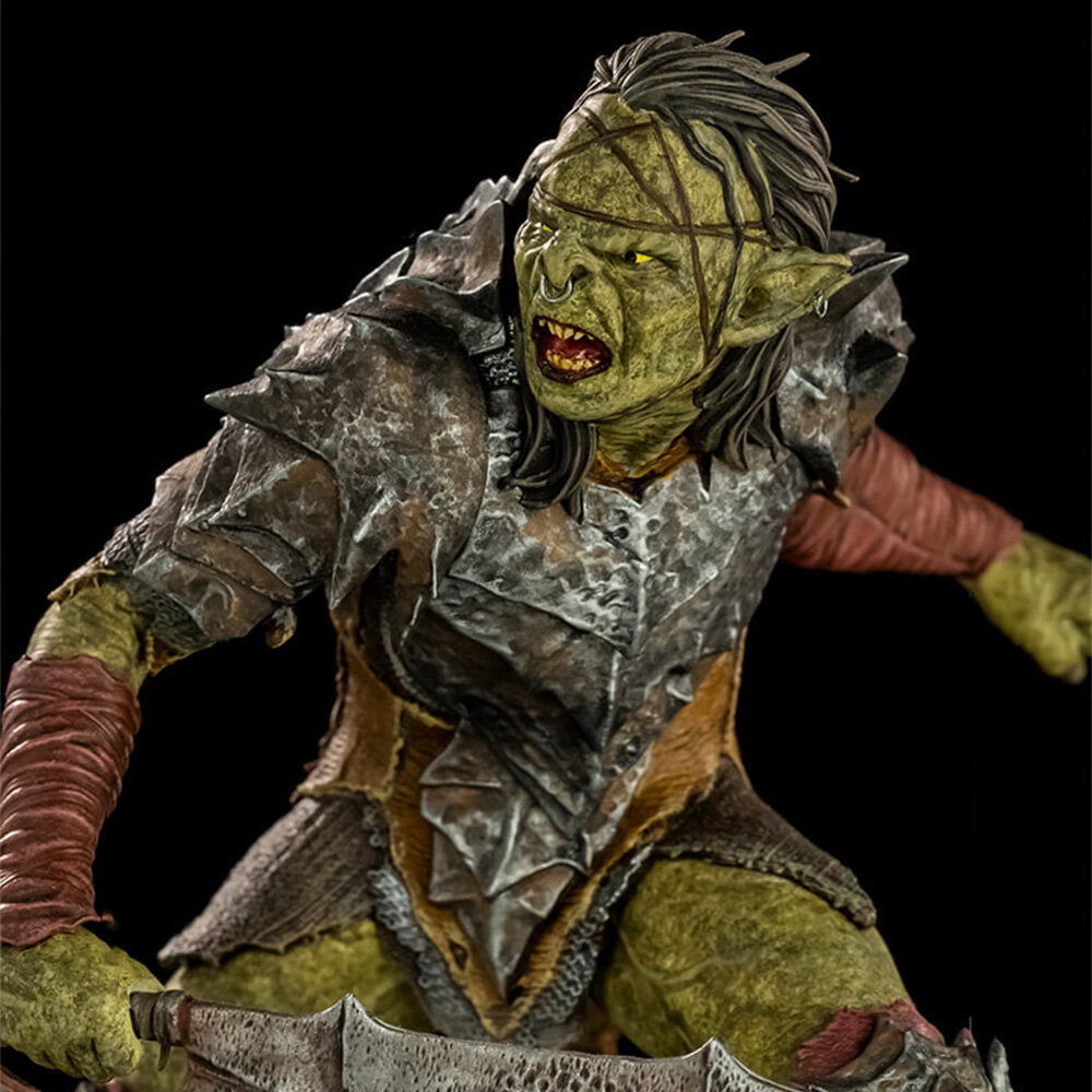 Орки Тёмных гор - жестокая и мерзкая раса. Они вторглись в королевство гномов и перебили их всех. Теперь же орки преследуют Братство Кольца по шахтам Мории. Данная фигурка станет отличным дополнением к коллекции персонажей из Властелина Колец. А проработка мельчайших деталей позволяет передать всю сущность орков.