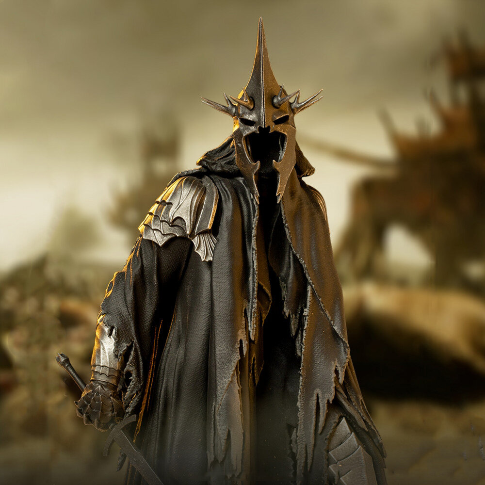 Iron Studios представляет статую грозного Короля ведьм из Ангмара на радость поклонникам и коллекционерам произведений Толкина. Когда-то Король людей был испорчен одним из девяти Колец Всевластия став одним из Призраков Кольца известных как Назгул. Тщательно проработанная до мельчайших деталей броня и реалистичность текстур не оставят никого равнодушным.