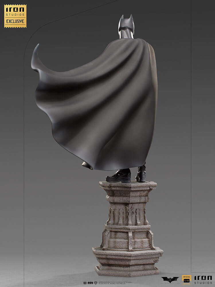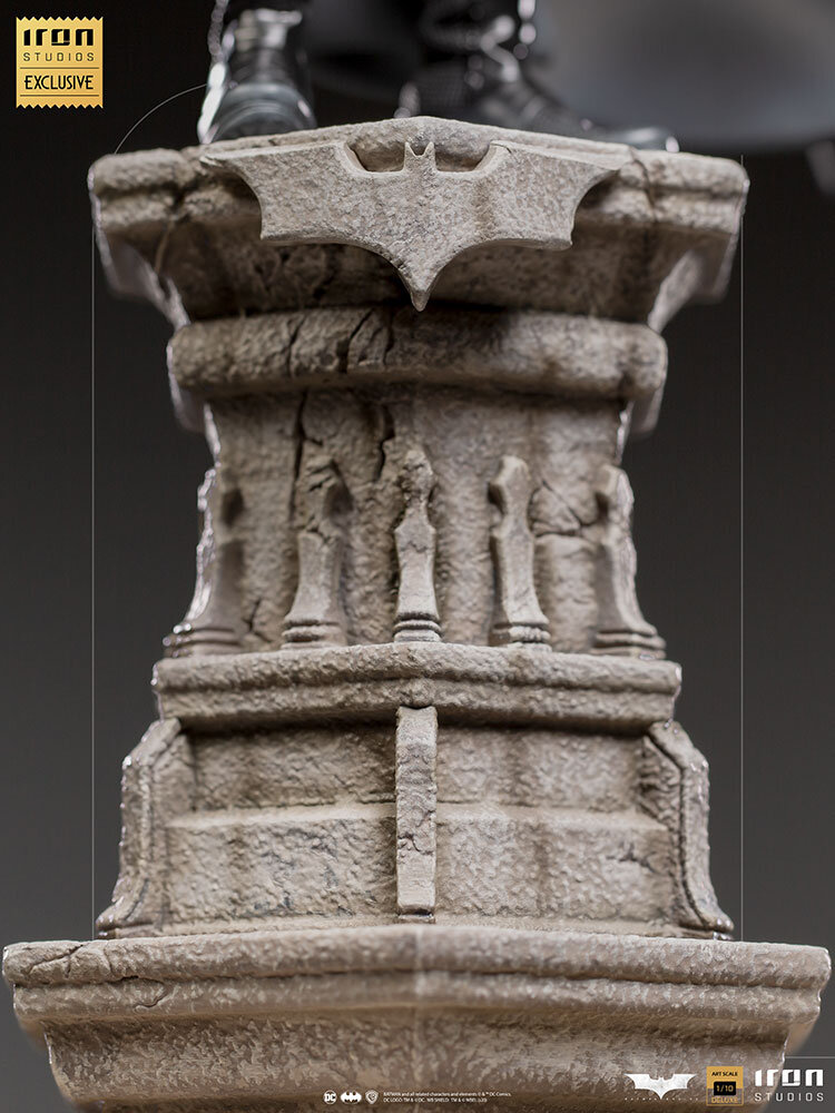 Статуэтка в масштабе 1/10 была сделана на основе оригинальных референсов из фильма, сохраняя предельную реалистичность и схожесть с Кристианом Бейлом в роли Бэтмена. Статуэтка сделана из полистоуна - искусственного камня, отличающегося прочностью. Все детали Тёмного Рыцаря окрашены полностью вручную, а сама статуэтка отличается потрясающей детализацией. Бэтмен возвышается над городом, стоя на мраморной колонне, а высота статуэтки составляет 31 сантиметр.