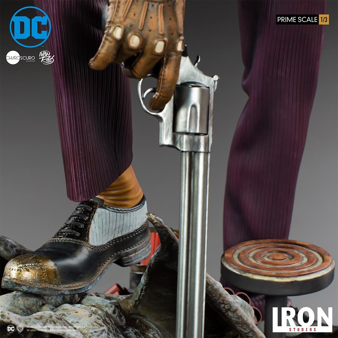 Масштабная детализированная основанная на концепт-арте Ивана Рейса статуэтка Джокера просто впечатляет своей реалистичностью и размерами. Сделанная в масштабе 1/3, статуэтка достигает в высоту 84 сантиметров.