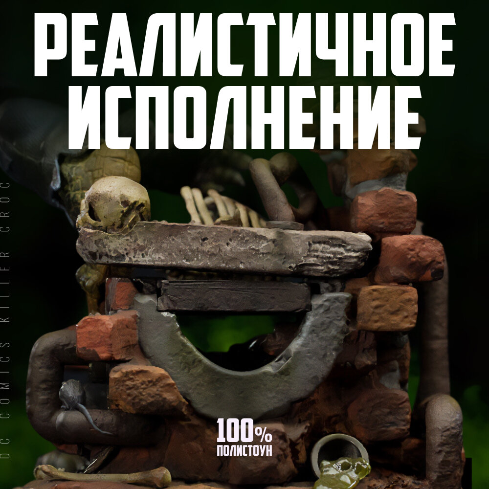Статуэтка сделана из полистоуна - искусственного камня, отличающегося прочностью и весом. Все детали Убийцы Крока окрашены полностью вручную, а сама статуэтка отличается потрясающей детализацией и реалистичностью. Крокодилья кожа Крока, его одежда, бинты на руках, да даже валяющиеся в ногах кости и стекающая из ржавых труб зелёная жижа - только посмотрите на все эти маленькие детали, выглядящие точь-в-точь как в реальной жизни!