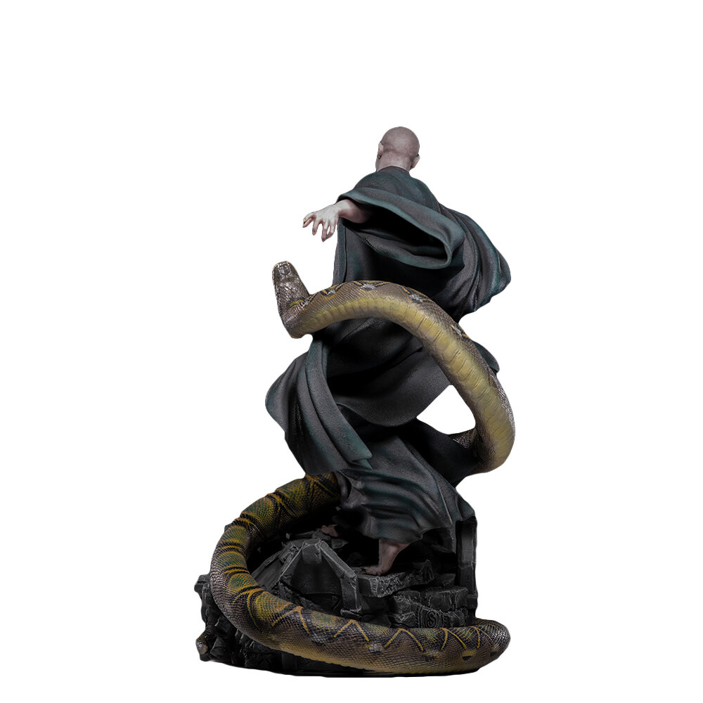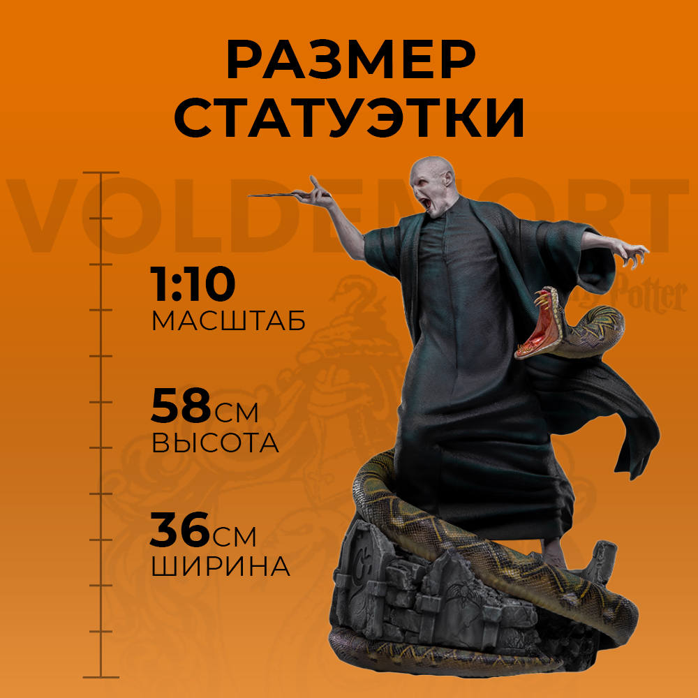 Самый могущественный Тёмный маг босиком взбирается на стилизованную подставку и вскидывает волшебную палочку для смертельного заклинания Avada Kedavra, пока верная Нагайна обвивает его тело. И всё это только для того, чтобы стать невероятным сокровищем среди коллекции фигурок и статуэток любого поттеромана.