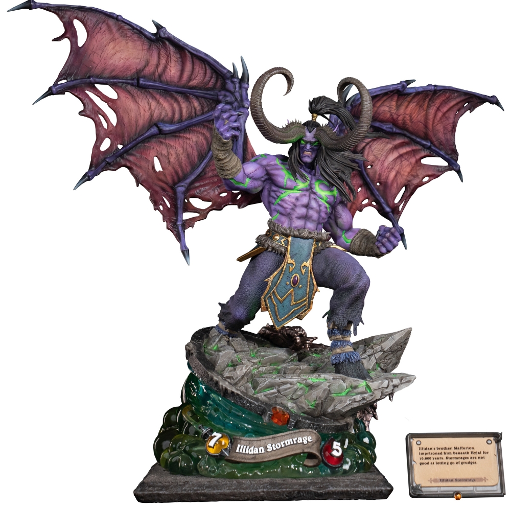 Представляем масштабную коллекционную статуэтку Иллидана Ярость Бури — одного из самых сложных, трагичных и культовых персонажей вселенной Warcraft. Созданная студией HEX Collectibles, эта скульптура в масштабе 1:6 и высотой 55 см — не просто фигурка, а монументальное воплощение силы, мятежа и вечной борьбы с судьбой.