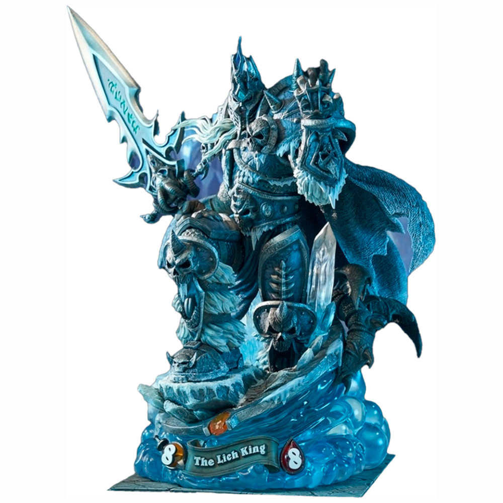 Представляем официальную коллекционную статуэтку Короля-лича — одного из самых знаковых и устрашающих персонажей вселенной Warcraft, переосмысленного в стилистике карточной игры Hearthstone. Созданная студией HEX Collectibles (подразделение Sideshow Collectibles), эта фигурка в масштабе 1:6 — не просто дань уважения легендарному злодею, а артистичное воплощение его мрачного величия в уникальном, стилизованном под Hearthstone дизайне.