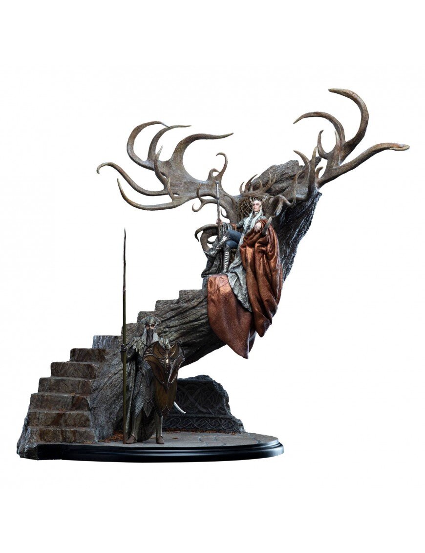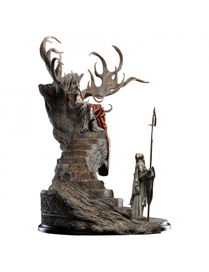 На своём высоком троне, увенчанном деревянными рогами, король эльфов Лихолесья Трандуил выносит приговор тем глупцам, что без приглашения вошли в его владения.