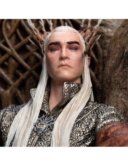 Статуэтка привлекает внимание тончайшей детализированности, которая была достигнута благодаря сочетанию цифрового и физического моделирования. В результате статуэтка получилась очень контрастной: поверхности грубые и матовые, гладкие и глянцевые. Плоские плиты лестницы и замысловатая опавшая листва. Над всем этим - завивающиеся рога эльфийского трона, наполовину вырезанные, наполовину выросшие, с самим королем, величественно восседающим в осенней ткани.