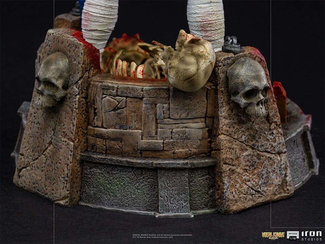 Его загадочное лицо наполовину скрыто традиционной китайской соломенной шляпой. Внешне он выглядит как обычный человек, но его ярко-белые глаза намекают на его сверхчеловеческие способности. Рэйден одет в белое кимоно ниндзя и в синий жилет, а из его рук исходят электрические разряды. Детализация данной статуэтки завораживает, и она на оставит равнодушным ни одного фаната серии Mortal Kombat.