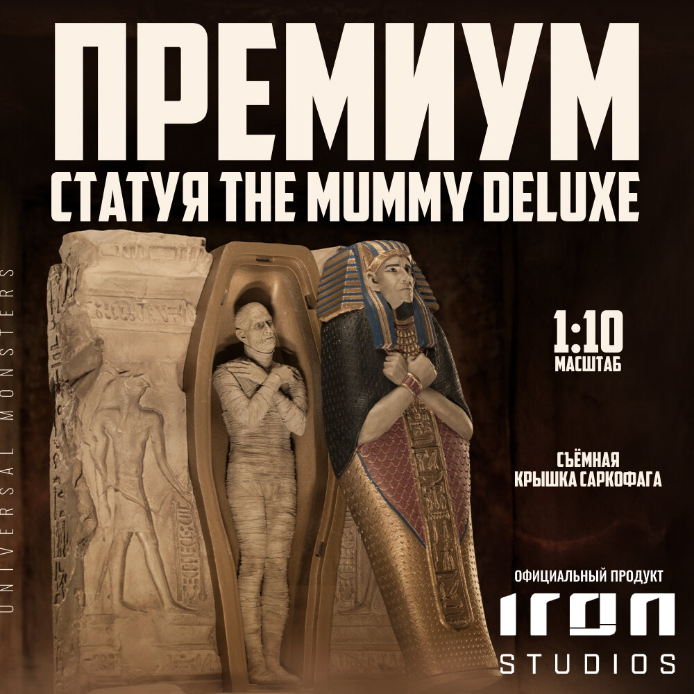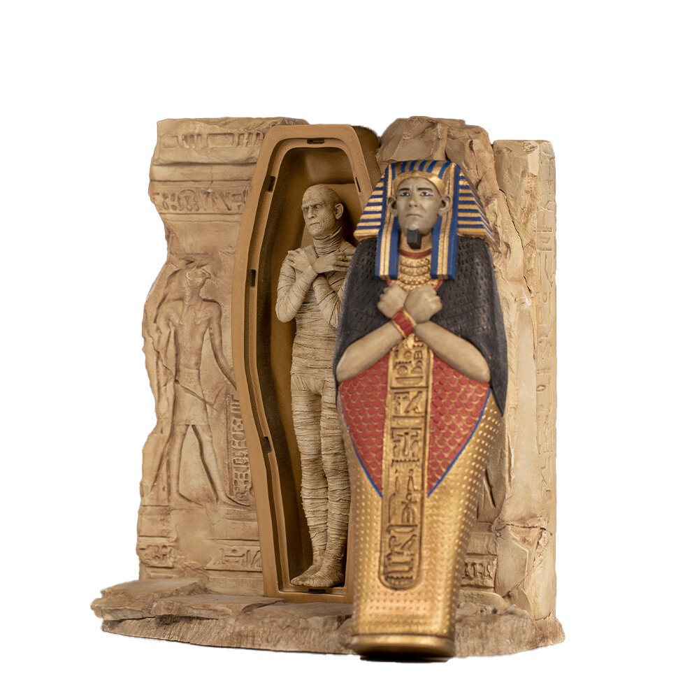 С реалистичной статуэткой по мотивам фильма Муммия компания Iron Studios с гордостью представляет статуэтку, созданную по мотивам культовой и классической франшизы культовых монстров Universal. Статуэтка вдохновлена фильмами ужасов, которые представили первую общую вселенную персонажей, увековеченных в различных фильмах, выпущенных между 1930-ми и 1950-ми годами, и которые были ответственны за определение образа и визуальной идентичности сверхъестественных существ, присутствующих по сей день в мировой поп-культуре.