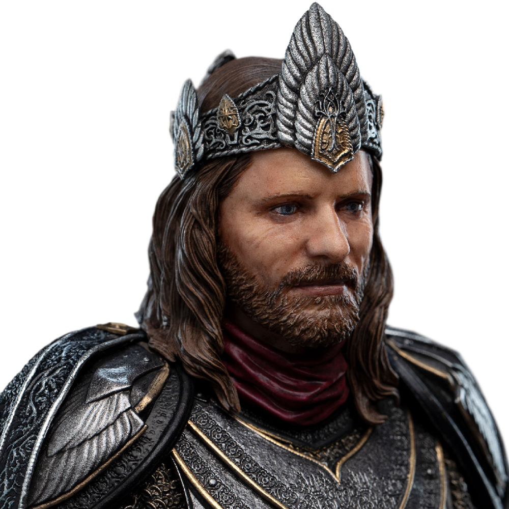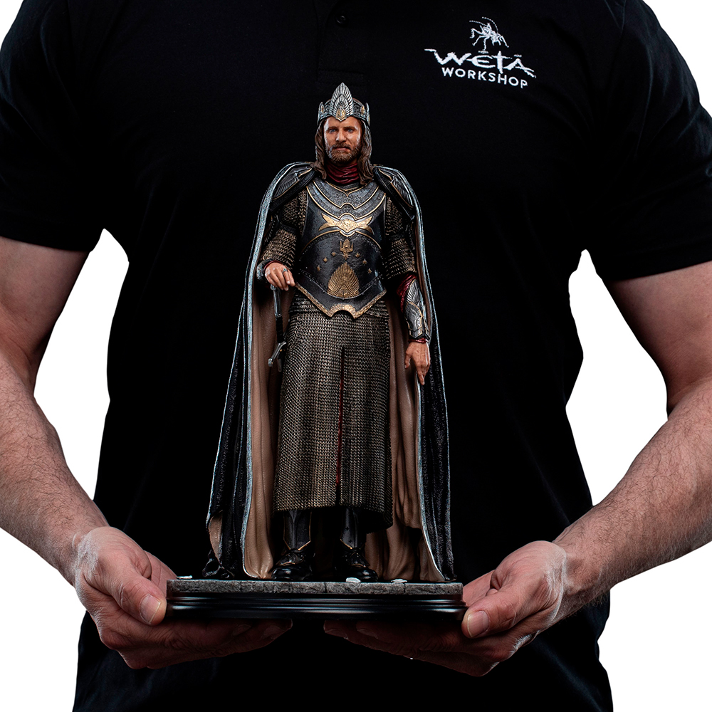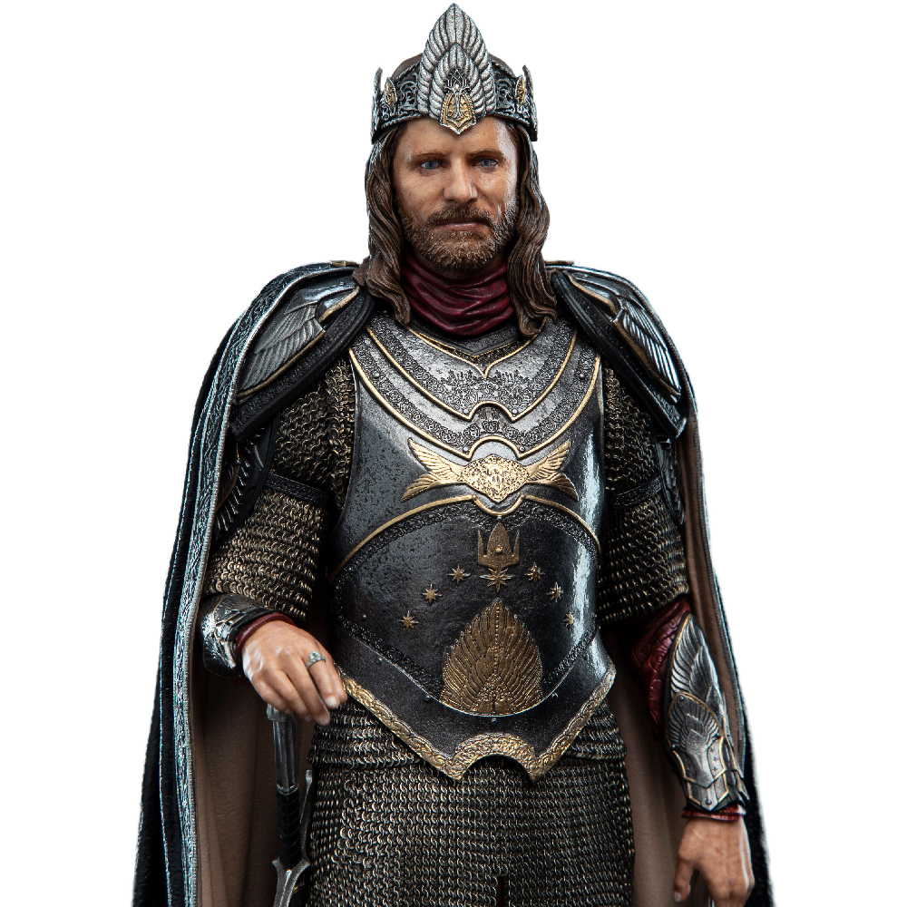 Миниатюра из Classic Series, посвящённой 20-летию трилогии Властелин Колец, создана теми же мастерами, что и в фильмах. Её скульптор Jason Aung — художник, внесший вклад в создание персонажей Средиземья. Он не просто воссоздал внешность — он передал вес короны, который Арагорн носил не на голове, а в сердце.