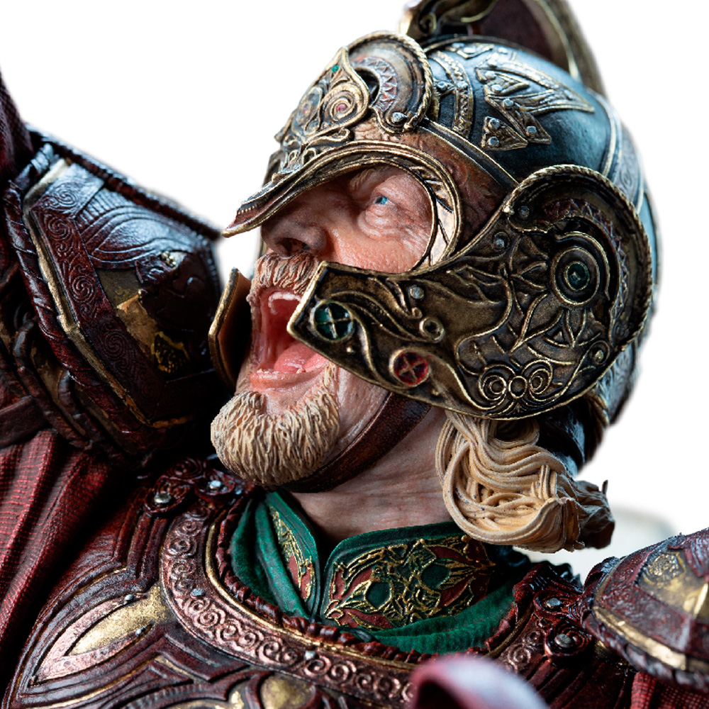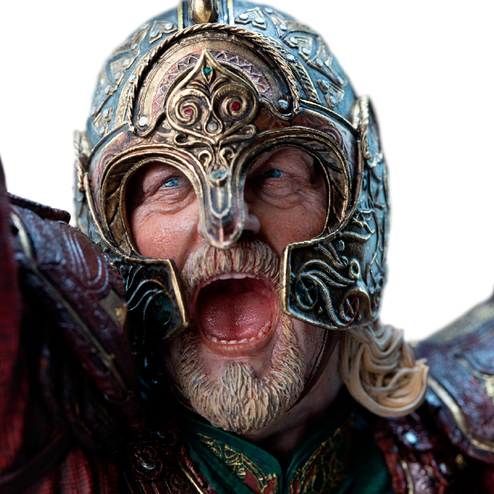 Теперь вы можете принести в свой дом этот легендарный момент — величие короля, верность его коня и славу Рохана, воссозданные с безупречным мастерством.