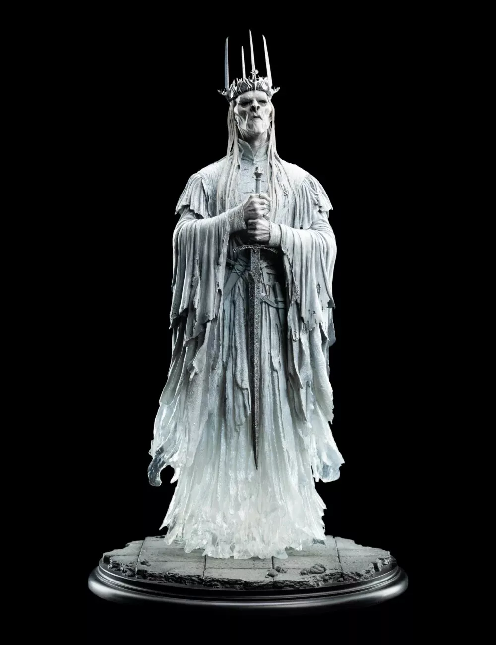 Погрузитесь в мрачное величие Мордора с этой впечатляющей коллекционной фигуркой Короля-чародея Ангмара от всемирно известной студии Weta Workshop — создателей визуального мира "Властелина колец" по мотивам легендарной трилогии Питера Джексона.