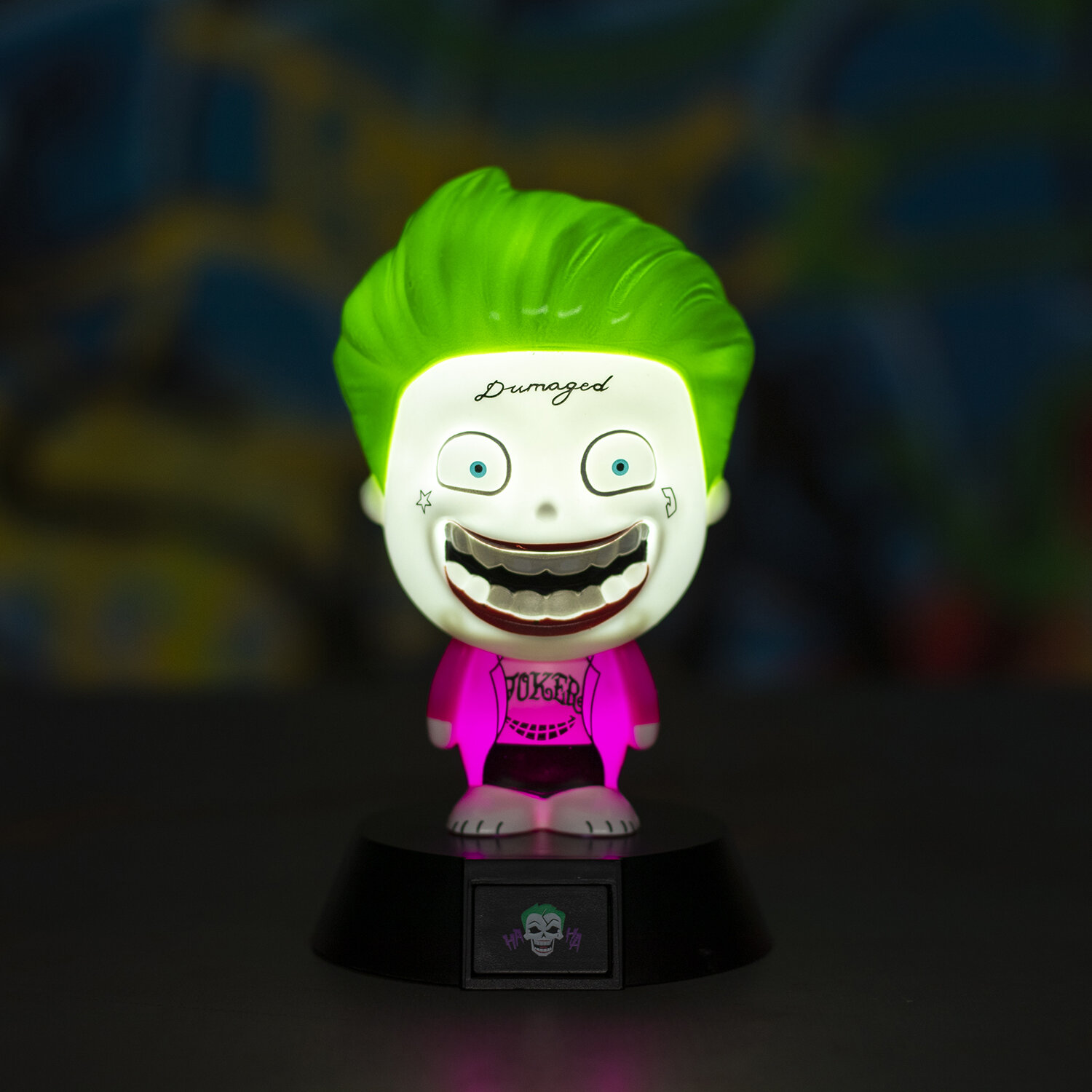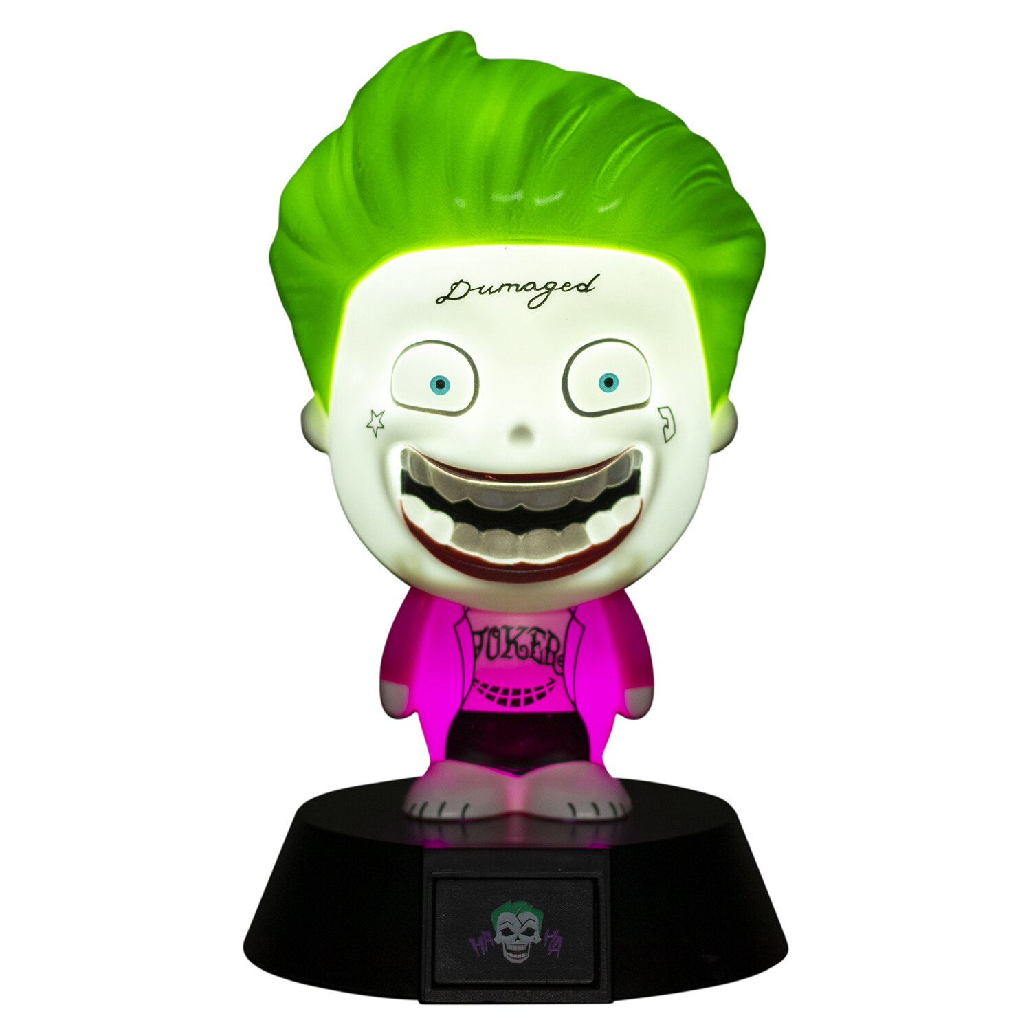 Украсьте свою комнату любимым безумным злодеем. Просто убедитесь, что вы сможете спать по ночам, когда Джокер рядом с вами. Идеально подходит для спальни, кабинета или игровой комнаты, этот настольный светильник имеет знаковый дизайн Джокера, который можно увидеть в недавнем фильме "Отряд самоубийц".