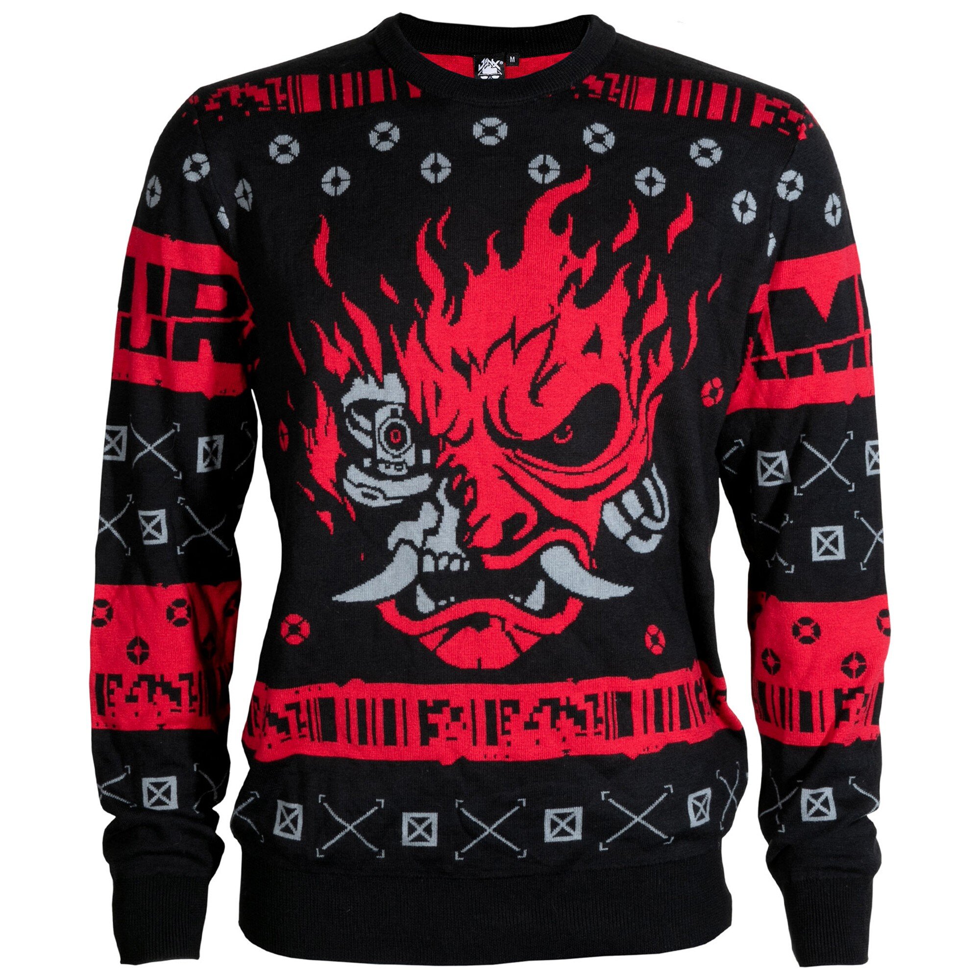 Просыпайся, Самурай, пора надевать этот праздничный свитер и зажечь на вечеринке! Вязанный свитер по мотивам игры Cyberpunk 2077 украшен логотипом группы Samurai спереди и надписью "Cheer the f#ck up Samurai" сзади.