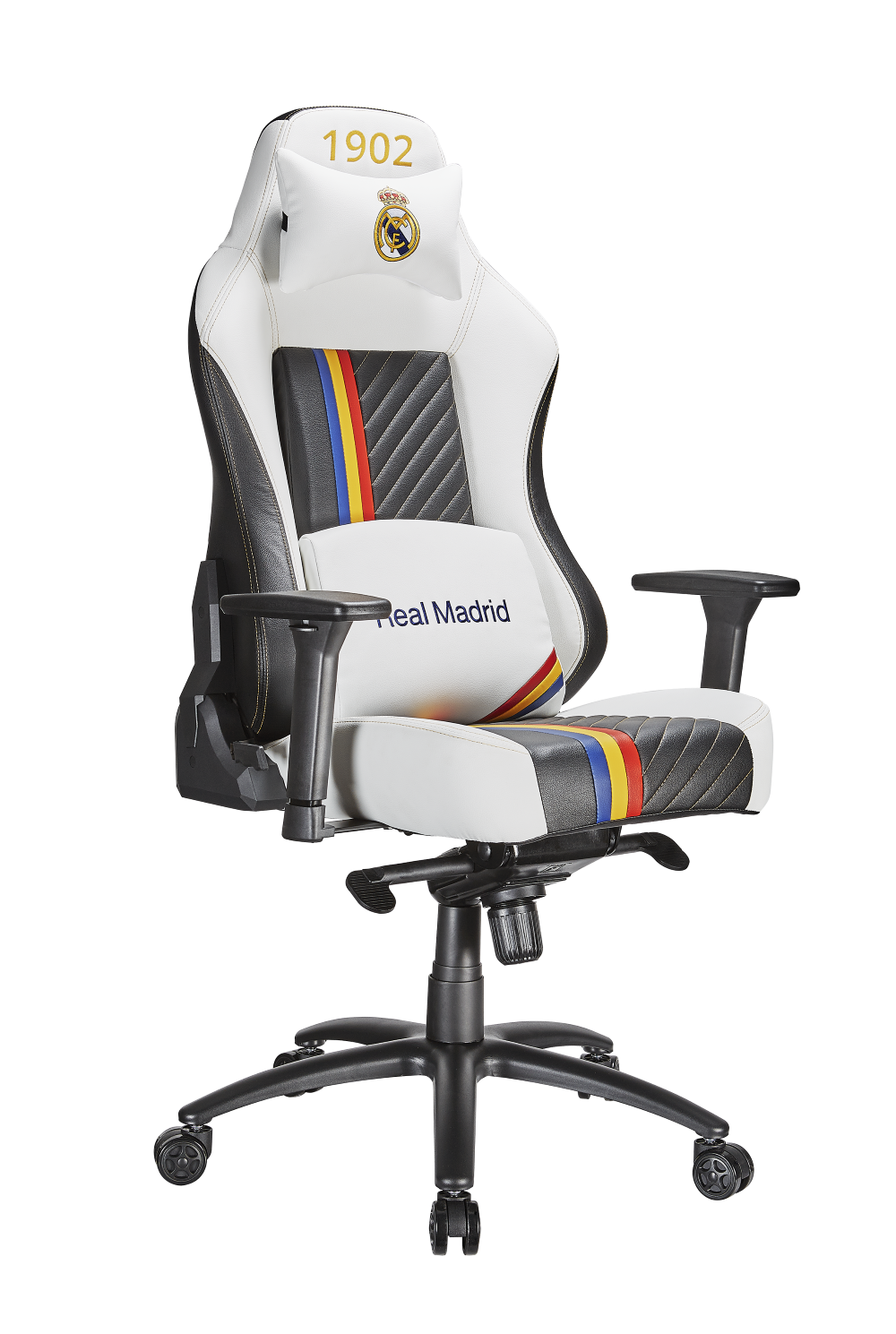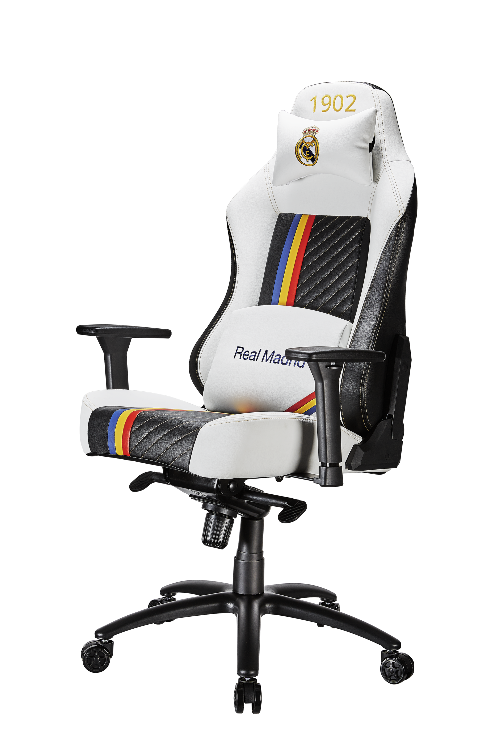 Кресло Real Madrid оснащено разнообразными регулировками, которые позволяют идеально подстроить его под себя. Новый долговечный механизм обеспечивает улучшенную эргономику и возможность раскачивания в кресле до 15 градусов, а при необходимости – полной блокировке этой функции. Более высокая спинка кресла подстраивается под ваше тело, а при необходимости может быть откинута на 150 градусов. В комплекте с креслом идут подушки под шею и поясницу, основная цель которых – обеспечить комфортом самые незащищенные точки тела.