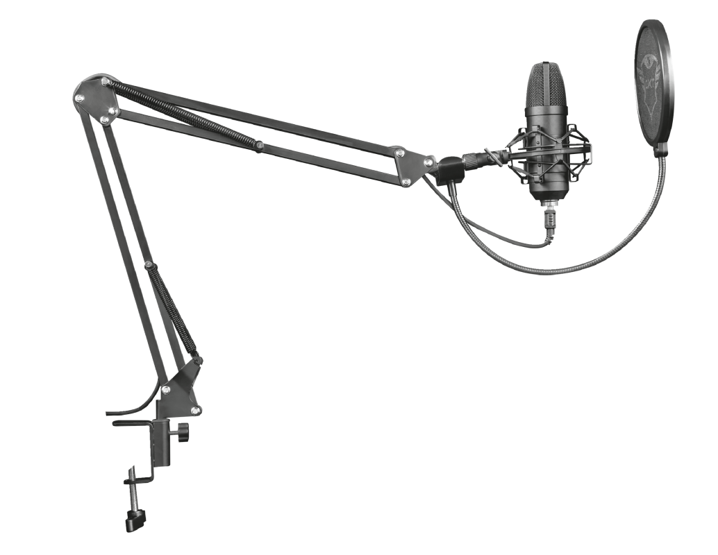 Легко и надежно закрепите микрофон при помощи регулируемого зажима для крепления к столу: следите за тем, чтобы положение микрофона всегда было наилучшим для обеспечения стабильной записи. Амортизационная подвеска предотвращает вибрацию от поднятия подставки микрофона. Поглощаться будет каждый незначительный отвлекающий толчок, и это позволит вашим слушателям полностью сосредоточиться на вашем голосе. Для обеспечения еще большей стабильности портативного микрофона вы можете использовать подставку на трех ножках, входящую в комплект.