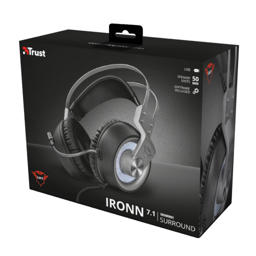Игровая гарнитура с накладными наушниками, с динамиками диаметром 50 мм и объемным звучанием формата 7.1