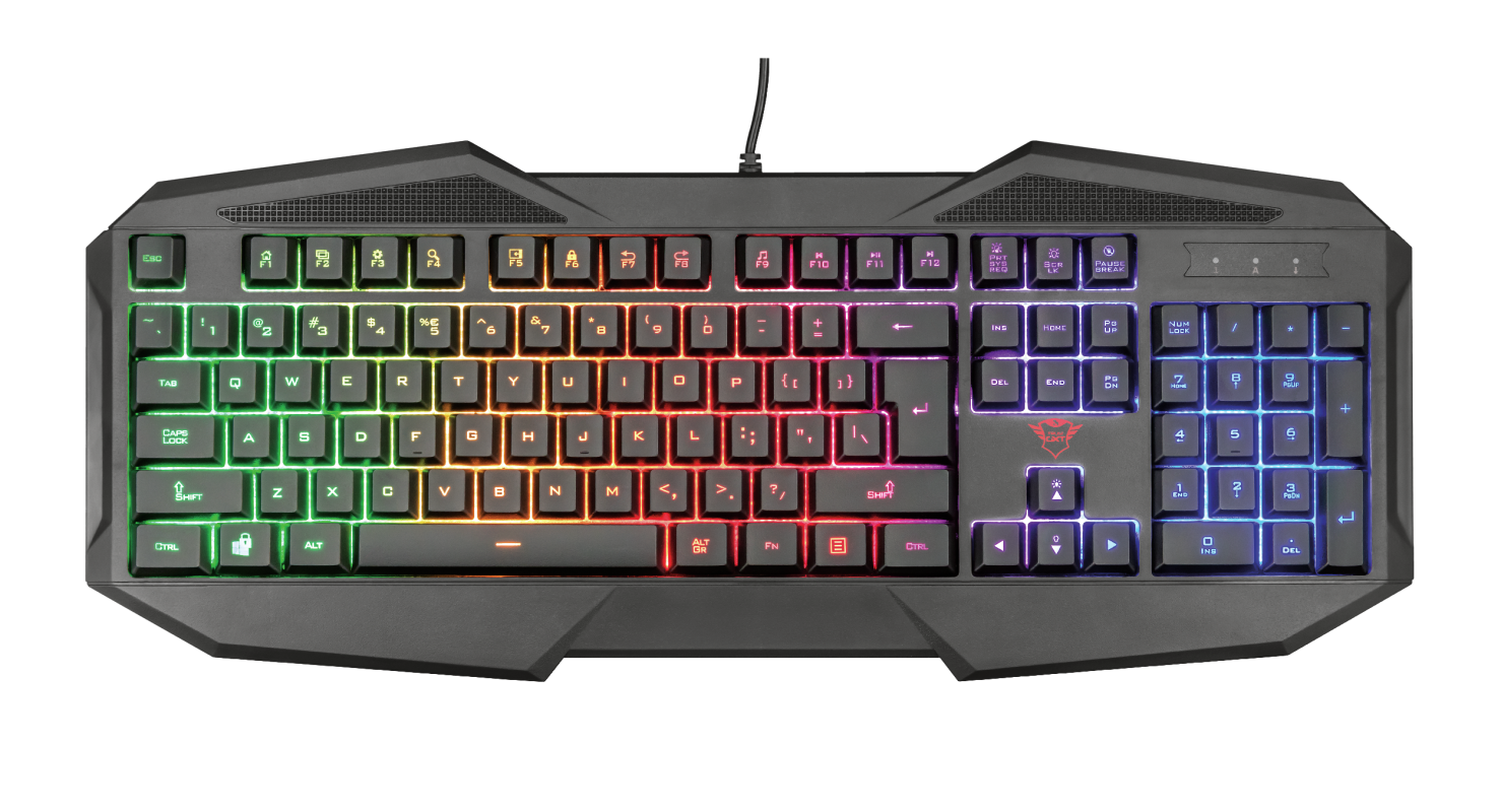 Trust GXT 830-RW AVONN - это полноразмерная игровая клавиатура с радужной подсветкой и 12 мультимедийными клавишами.