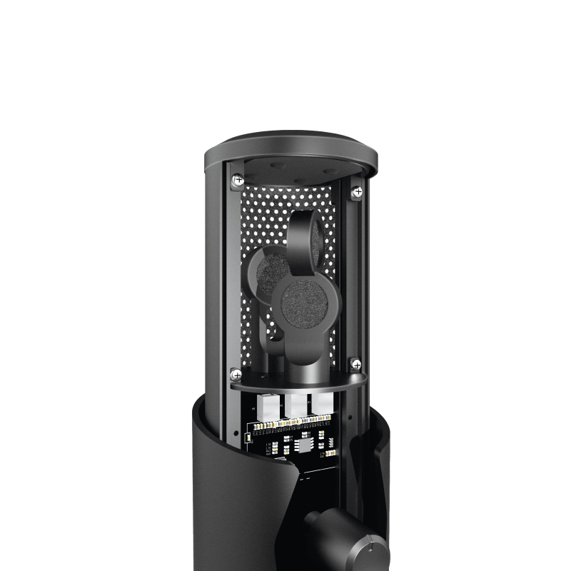 Чтобы улучшить свои записи, вы можете слушать их в режиме реального времени с помощью порта для мониторинга наушников FYRU с нулевой задержкой. Кроме того, вы можете регулировать свои настройки с помощью удобных ручек усиления микрофона, отключения звука и громкости наушников на передней панели микрофона. А внутренний поп-фильтр отфильтровывает взрывные и фрикативные звуки (нежелательные звуки из букв, таких как P и F) для еще более плавной записи.