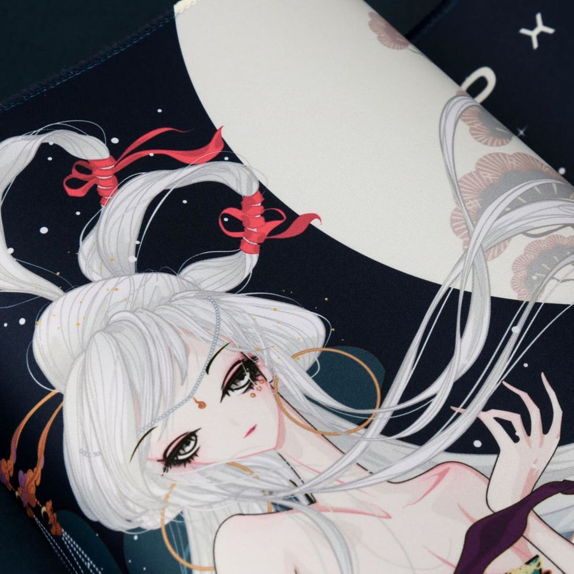 Этот высококачественный коврик для клавиатуры и мыши Varmilo Aurora изображает богиню Луны - Чанъэ. В китайской мифологии она украла эликсир, выпила его и вознеслась на Луну. Данное изображение нарисовано знаменитым китайским иллюстратором Ли Хуаном. И этот коврик станет отличным дополнением к вашей клавиатуре от Varmilo.