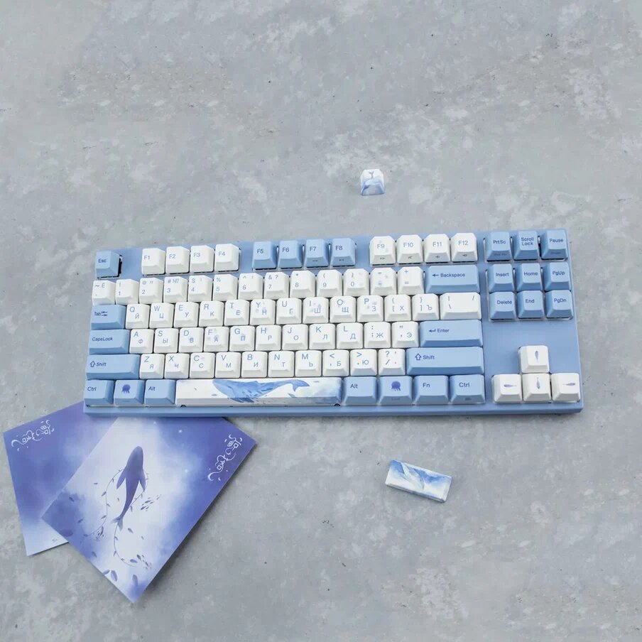 Кейкапы Varmilo Sea Melody V2 VEM87 изготовлены из PBT пластика, а это значит что они очень приятные на ощупь и гораздо более устойчивые к истиранию, чем кейкапы изготовленные из других видов пластиков.