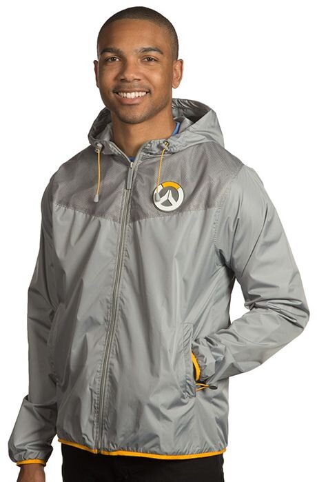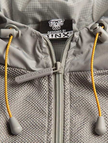 Имеет цветную резиновую нашивку на левой груди, а также специальную застежку-молнию Overwatch, желтый шнурок для худи, желтые шнурки на карманах, желтую отделку манжет и желтый низ.