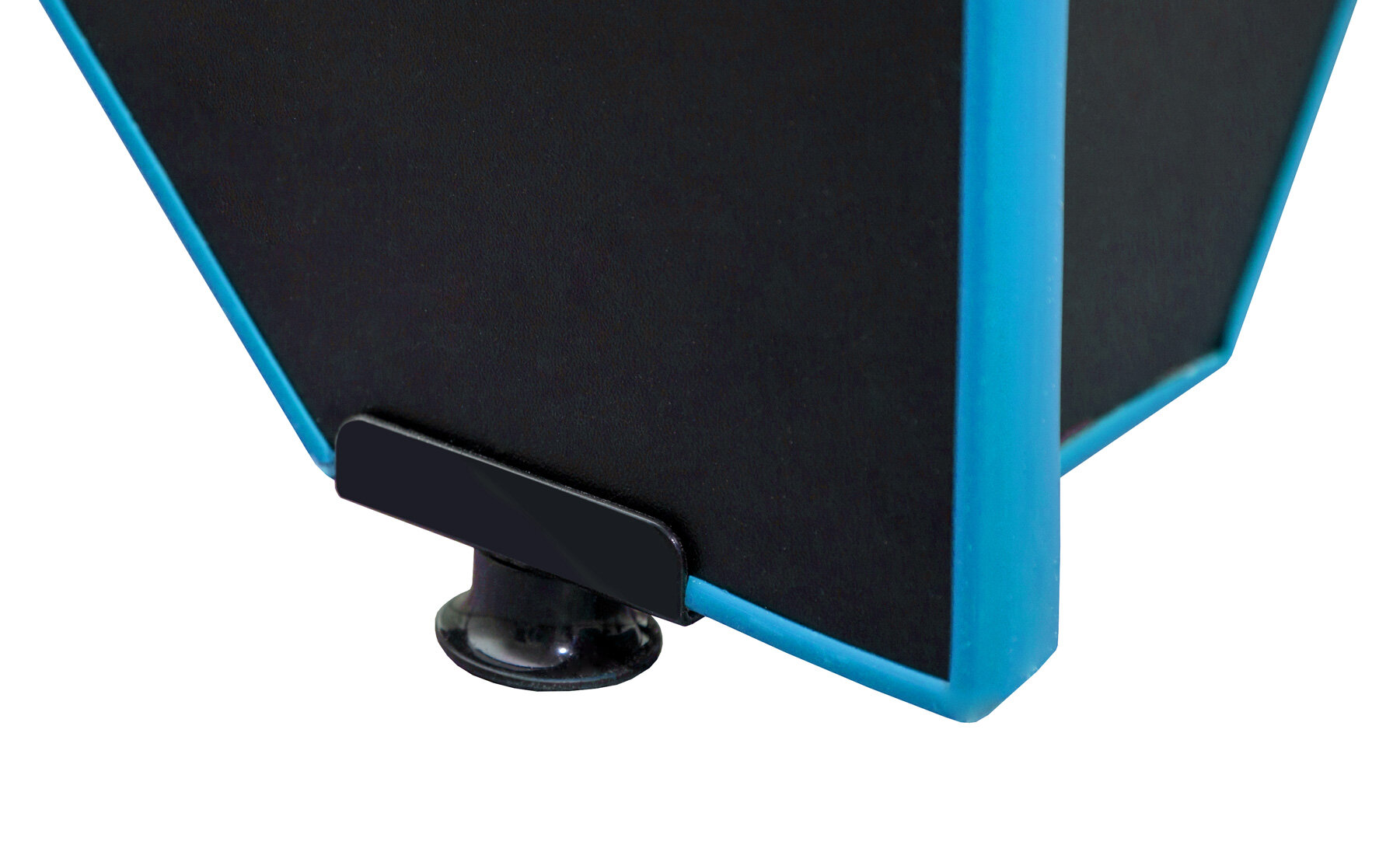 Стол имеет два держателя, на которые можно удобно повесить наушники или рюкзак. Регулируемые по высоте ножки позволят компенсировать неровности пола. Передняя и задняя части столешницы имеют вырез. Вырез спереди позволяет удобно расположиться, придвинувшись к столу максимально близко, сзади - убрать провода от монитора и компьютерной периферии. Отверстия в столешнице, закрытые декоративными втулками, позволяют вывести провода или установить дополнительную фурнитуру.