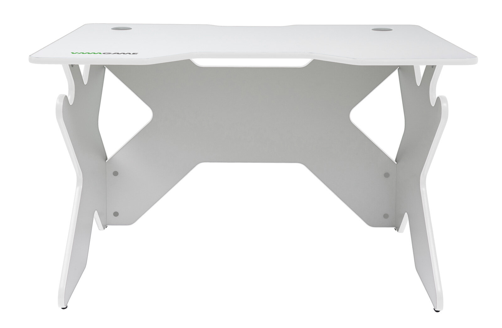 Стол имеет два держателя, на которые можно удобно повесить наушники или рюкзак. Регулируемые по высоте ножки позволят компенсировать неровности пола. Передняя и задняя части столешницы имеют вырез. Вырез спереди позволяет удобно расположиться, придвинувшись к столу максимально близко, сзади - убрать провода от монитора и компьютерной периферии. Отверстия в столешнице, закрытые декоративными втулками, позволяют вывести провода или установить дополнительную фурнитуру.