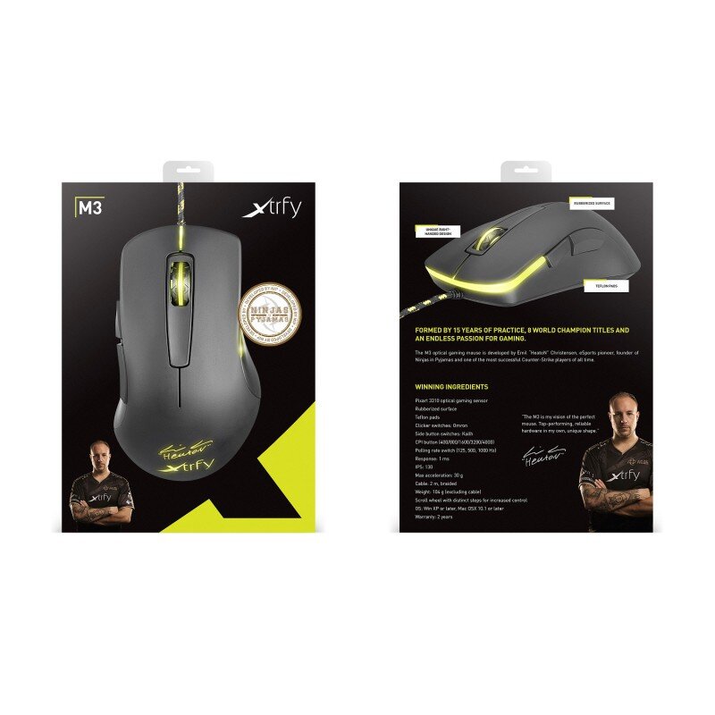 Оптическая игровая мышь M3 разработана Эмилем «HeatoN» Кристенсеном, пионером киберспорта, основателем Ninjas in Pyjamas и одним из самых успешных игроков в Counter-Strike всех времен.