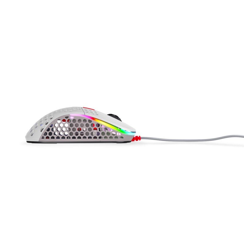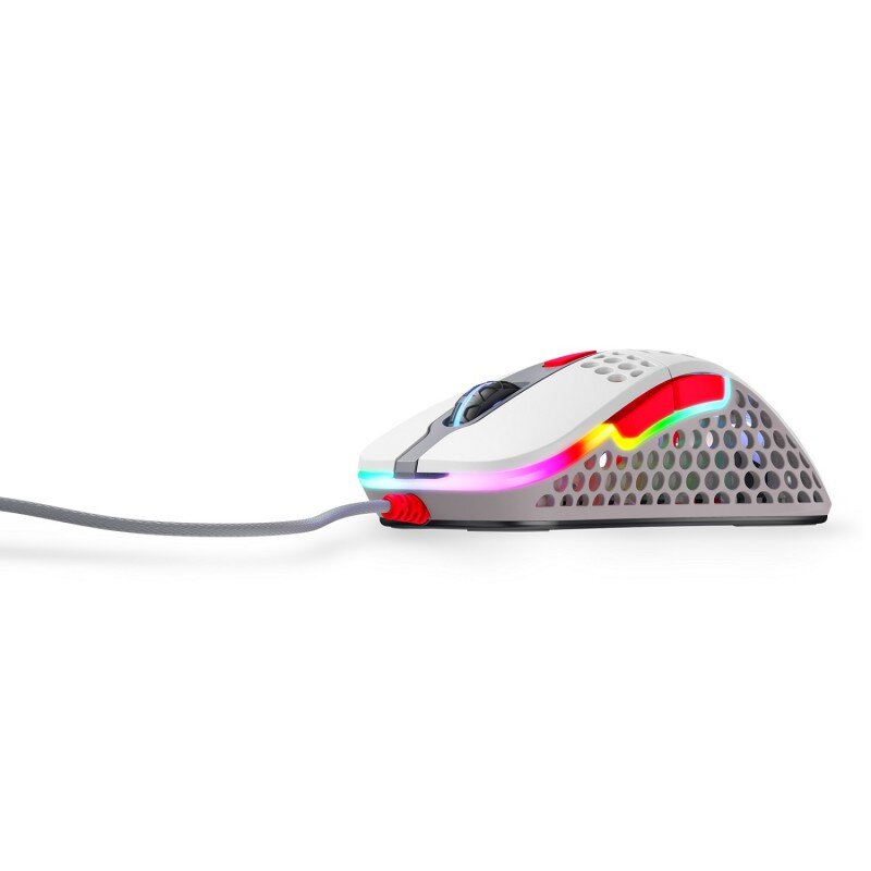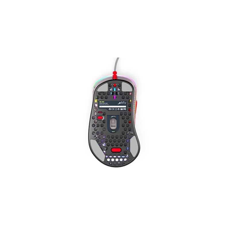 Перфорированный корпус мыши тщательно продуман, чтобы сохранить максимальную прочность при весе всего 69 грамм. Через перфорацию просвечивает логотип Xtrfy с RGB-подсветкой. Внутренности мыши имеют специальное покрытие, чтобы защитить её от пыли и влаги. Переключатели Omron обеспечат 20 миллионов кликов, оптимизированных для профессиональных игроков.