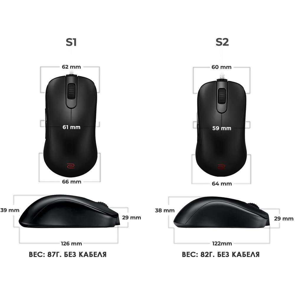 Мышь серии S достаточно коротка, что позволяет легко обхватить и удерживать её. Оптимальное расстояние между ладонью и задним краем мыши позволит пользователям более свободно делать вертикальные движения. Оснащена сенсором 3360 и поставляются в двух разных размерах.