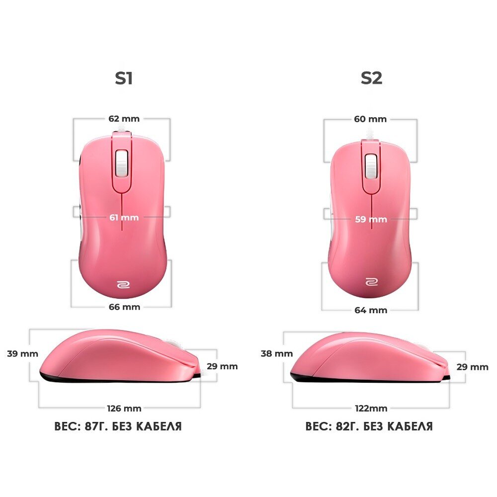 В целом мышь S Series достаточно коротка, что позволяет легко обхватить и удерживать её. Оптимальное расстояние между ладонью и задним краем мыши позволит пользователям более свободно делать вертикальные движения. Мыши DIVINA S имеют глянцевое покрытие розового и синего цвета. Оснащены сенсором 3360 и поставляются в двух разных размерах. Продукты DIVINA VERSION доступны не во всех магазинах. Для получения дополнительной информации посетите веб-сайт DIVINA.